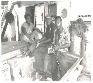Sailors on an inter island ship receiving scripture materials